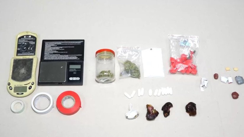 უწყების ცნობით, სამართალდამცველებმა დაკავებულის საცხოვრებელი ბინის ჩხრეკისას სხვადასხვა სახის განსაკუთრებით დიდი ოდენობით ნარკოტიკული საშუალება ნივთმტკიცებად ამოიღეს, მათ შორის: „მეფედრონი“, „მდმა“, „მეტამფეტამინი“, „პსილოცინის“ შემცველი სოკო, „გამომშრალი მარიხუანა“ და „პრეგაბალინი“. საგამოძიებო მოქმედებების შედეგად, პოლიციის მიერ, ასევე, ამოღებულია ნარკოტიკული საშუალების დაფასოებისთვის საჭირო მასალები, წებოვანი ლენტები და ელექტრო სასწორი.