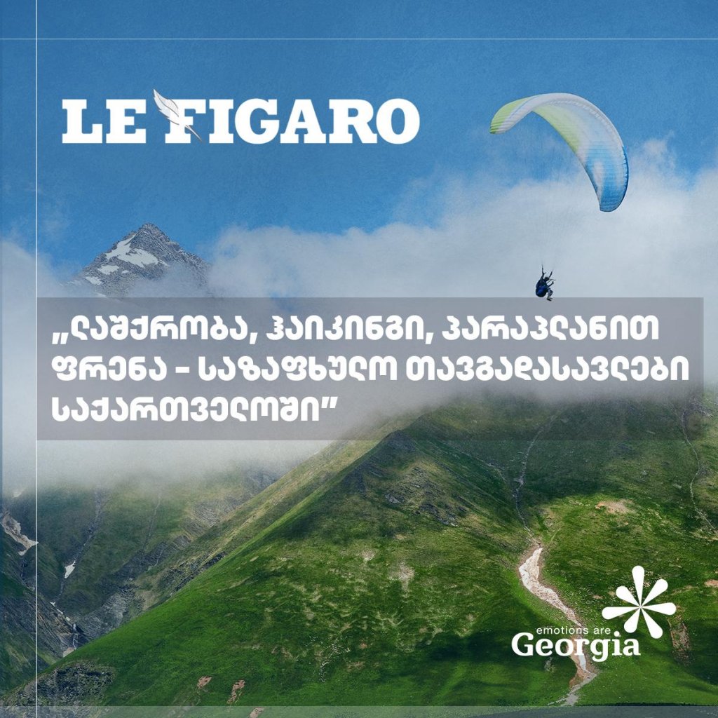საქართველოს ტურიზმის ეროვნული ადმინისტრაციის ახალი მარკეტინგული კამპანიის ფარგლებში, გავლენიანი ფრანგული გამოცემა Le Figaro საქართველოს ტურისტული პოტენციალის შესახებ სტატიებს აქვეყნებს.