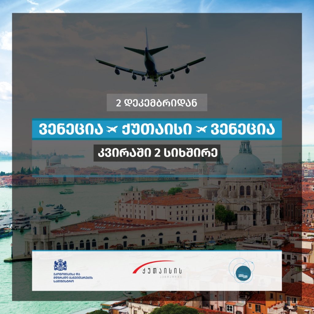 ინტენსიური მოლაპარაკებები საქართველოს აეროპორტების გაერთიანებამ ავიაკომპანიასთან წარმატებით დაასრულა. ორი ისტორიული ქალაქის - ქუთაისისა და ვენეციის დაკავშირებით მოგზაურობა საქართველოსა და იტალიას შორის კიდევ უფრო ხელმისაწვდომი, კომფორტული და მრავალფეროვანი გახდება.