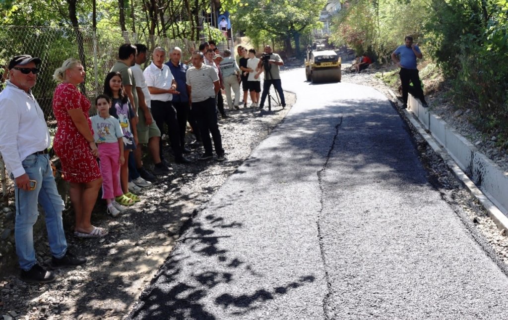 გზაზე ასფალტ/ბეტონის საფარის პირველი ფენის დაგების სამუშაოს მუნიციპალიტეტის მერი ვახტანგ მაისურაძე თვითმმართველობის წარმომადგენლებთან, მშენებლებთან და მოსახლეობასთან ერთად გაეცნო.
