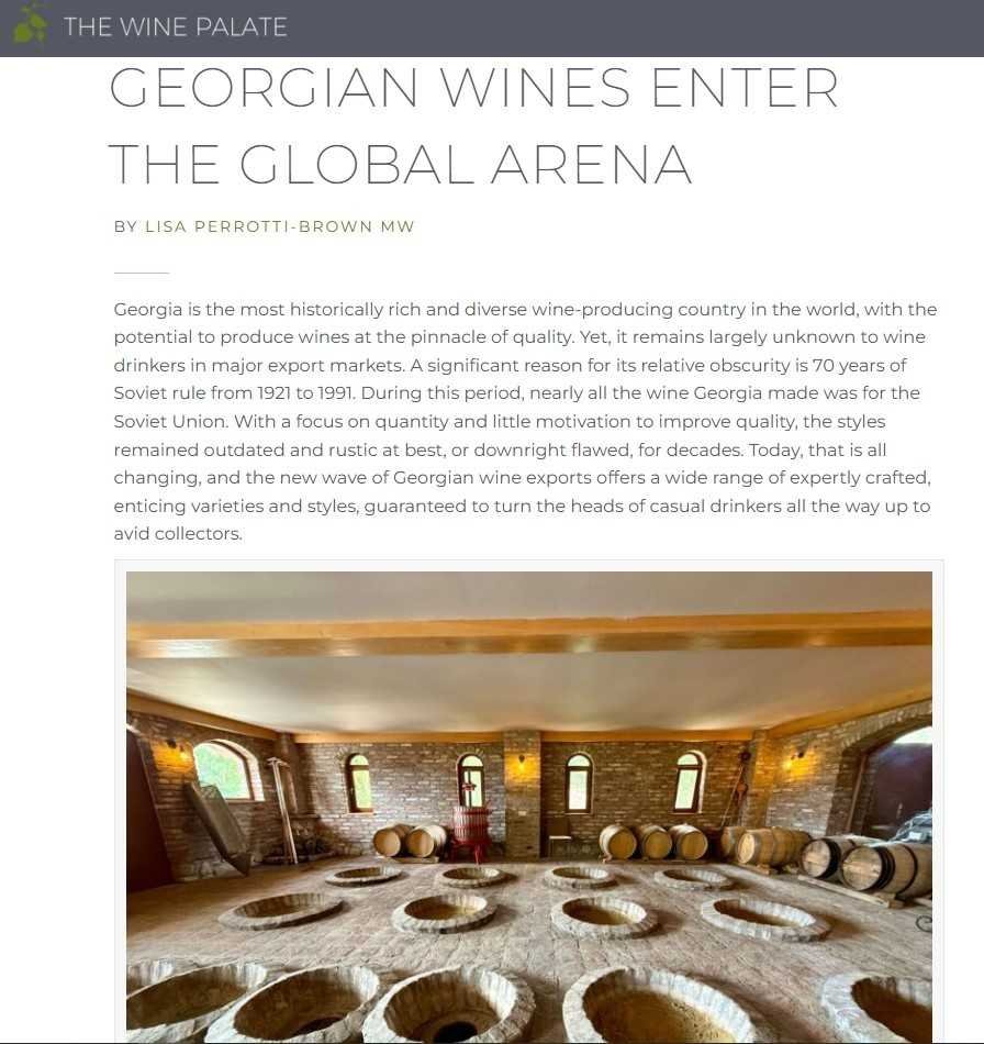 „ქართული ღვინოები გლობალურ ასპარეზზე გამოდიან“ სტატია - ამ სათაურით ამერიკულ გამომცემლობაში „The Wine Palate“ გამოქვეყნდა. სტატიის ავტორი, ამერიკელი ღვინის მაგისტრი ლისა პეროტი-ბრაუნი (Lisa Perrotti-Brown), ღვინის ეროვნული სააგენტოსა და ამერიკული კომპანიის „Big Sky Ranch Inc” თანამშრომლობის ფარგლებში, საქართველოს ივლისში ეწვია.