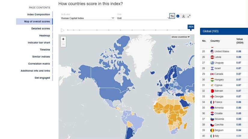 ევროკომისია, გაეროს მიერ მომზადებული, ელექტრონული მმართველობის განვითარების 2024 წლის ანგარიშის ბაზაზე ადამიანური კაპიტალის ინდექსს აქვეყნებს. ადამიანური კაპიტალის ინდექსით საქართველომ შეფასების 100 პროცენტიანი სისტემით 87% მიიღო, მსოფლიოში 33-ე ადგილზე გავიდა და ევროპის საუკეთესო ოცეულში მოხვდა.