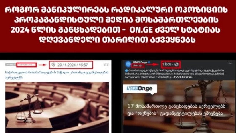 რადიკალური ოპოზიციის პროპაგანდისტული მედია On.ge 17 მოსამართლის მიერ 2024 წლის 29 ნოემბერს გავრცელებულ განცხადებას დღევანდელი თარიღით აქვეყნებს და ახალ სტატიად ასაღებს.