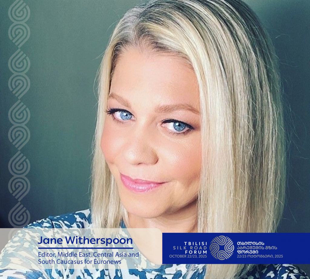 ჯეინ უიზერსპუნი, Euronews-ის რედაქტორი ახლო აღმოსავლეთში, ცენტრალურ აზიასა და სამხრეთ კავკასიაში, „თბილისის აბრეშუმის გზის ფორუმზე "პანელურ დისკუსიას - "Energy Crossroads – Choices for a secure Future" გაუძღვება.
