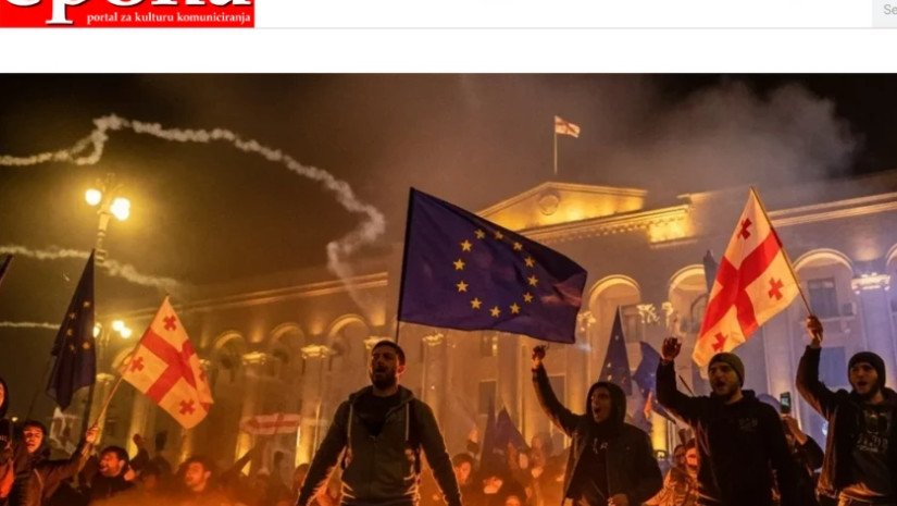 სტატიაში აღნიშნულია, რომ: „საქართველოში მიმდინარე პროცესები დასავლური გავლენის ორკესტრირებული დემონსტრირებაა“ და წლების განმავლობაში, საქართველო რუსეთსა და დასავლეთს შორის გეოპოლიტიკური განხილვის საგანი იყო, სტრატეგიულად მნიშვნელოვანი კავკასიის ენერგეტიკული და სატრანსპორტო დერეფნებისთვის.