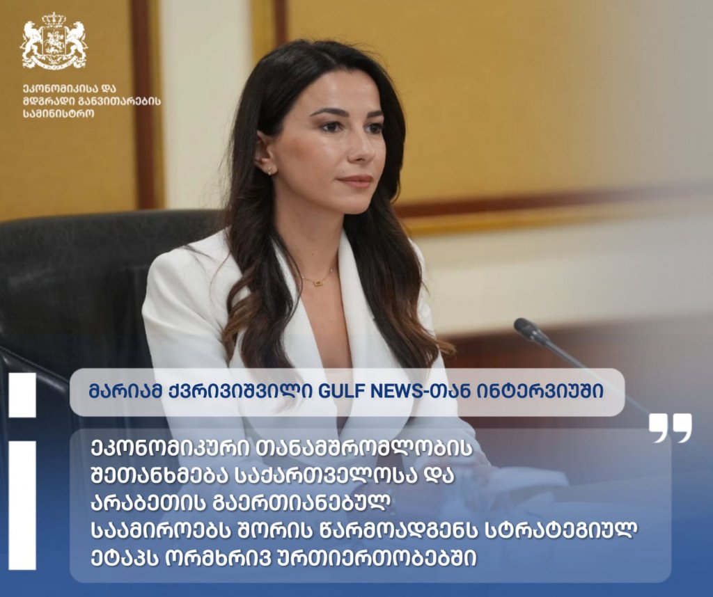 „ყოვლისმომცველი ეკონომიკური თანამშრომლობის შეთანხმება საქართველოსა და არაბეთის გაერთიანებულ საამიროებს შორის წარმოადგენს სტრატეგიულ ეტაპს ორმხრივ ურთიერთობებში. ვაჭრობის ლიბერალიზაციის მიღმა, შეთანხმება ქმნის საფუძველს, უფრო ღრმა და მრავალფეროვანი თანამშრომლობისთვის არაბეთის გაერთიანებული საამიროების ინსტიტუტებთან რამდენიმე პრიორიტეტულ სექტორში," - განაცხადა ეკონომიკისა და მდგრადი განვითარების მინისტრმა მარიამ ქვრივიშვილმა.
