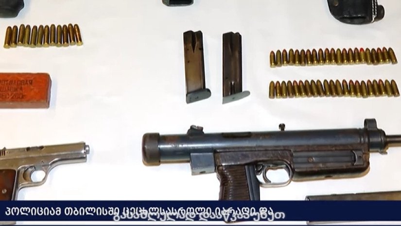 „სამართალდამცველებმა ოპერატიული ინფორმაციის საფუძველზე, კ.ხ.-ს საცხოვრებელი სახლის ჩხრეკისას, სხვადასხვა სახის ცეცხლსასროლი იარაღი და საბრძოლო მასალა ამოიღეს, კერძოდ: 4 ცეცხლსასროლი იარაღი, რევოლვერი, ავტომატი, მაყუჩი, 82 ვაზნა, 6 მჭიდი და 200 გრამი ასაფეთქებელი ნივთიერება „ტროტილი“.