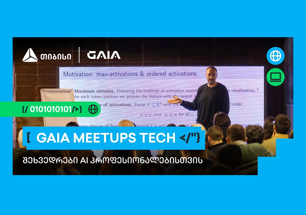 თიბისის მხარდაჭერით, საქართველოს ხელოვნური ინტელექტის ასოციაცია (GAIA), ყოველთვიური შეხვედრების სერიას „GAIA Meetups“ აგრძელებს.13 ნოემბერს GAIA Meetups Tech-ის მორიგი შეხვედრა ჩატარდა, რომლის სპიკერიც AI მკვლევარი ლევან ცინაძე იყო. მან მონაწილეებს საკუთარი კვლევის შედეგები გაუზიარა. კვლევა ენის მოდელების (LLMs) ახსნადობას (Explainability) და ინტერპრეტირებადობას (Interpretability) შეეხება და კომპლექსურ მათემატიკურ საკითხებს მოიცავს.პრეზენტაციის გარდა, შეხვედრის მონაწილეებს ნეთვორქინგის და იდეების, სიახლეებისა და გამოცდილების გაცვლის შესაძლებლობაც ჰქონდათ.