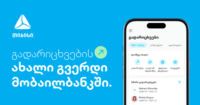 აუცილებლად გადმოწერე თიბისის განახლებული მობაილბანკი და მიიღე გადარიცხვების ახალი, სწრაფი და მარტივი გამოცდილება.