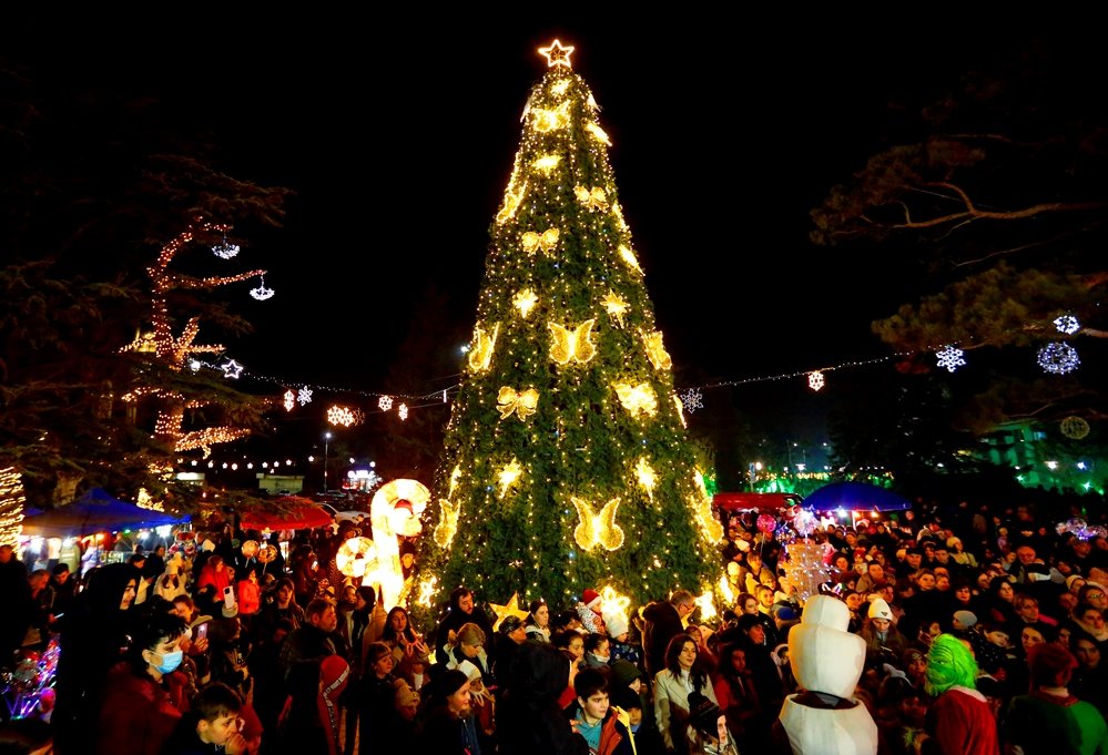 დღეს კასპში კულტურის ცენტრის წინ საახალწლო ნაძვის ხე საზეიმოდ აინთო.