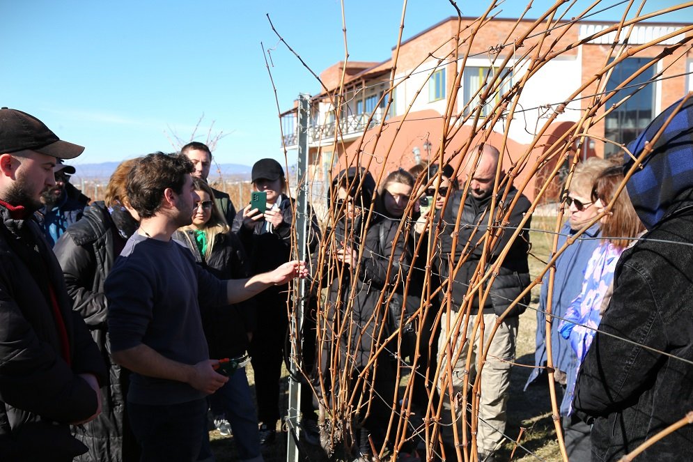 მევენახეობა-მეღვინეობის კვლევის სამსახურის წარმომადგენლებმა დავით ჩიჩუამ და ნიკოლოზ კირვალიძემ სტუდენტებს გააცნეს ვაზის გასხვლის ბიოლოგიური საფუძვლები, ფორმირების თანამედროვე სისტემები და ვენახის სწორი მართვის მნიშვნელობა მოსავლიანობისა და ხარისხის შენარჩუნების კონტექსტში.