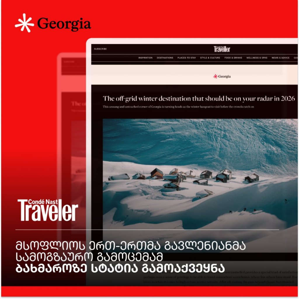 საქართველოს ტურიზმის ეროვნული ადმინისტრაციის საერთაშორისო მარკეტინგული კამპანიის ფარგლებში, მსოფლიოს ერთ-ერთმა პრესტიჟულმა და გავლენიანმა სამოგზაურო გამოცემამ, Condé Nast Traveller-მა, საქართველოს ვრცელი სტატია მიუძღვნა. სტატიაში, სათაურით: „ექსკლუზიური ზამთრის მიმართულება, რომელიც 2026 წელს თქვენს რადარზე უნდა მოხვდეს“ გურიის მაღალმთიან კურორტ ბახმაროზეა საუბარი.