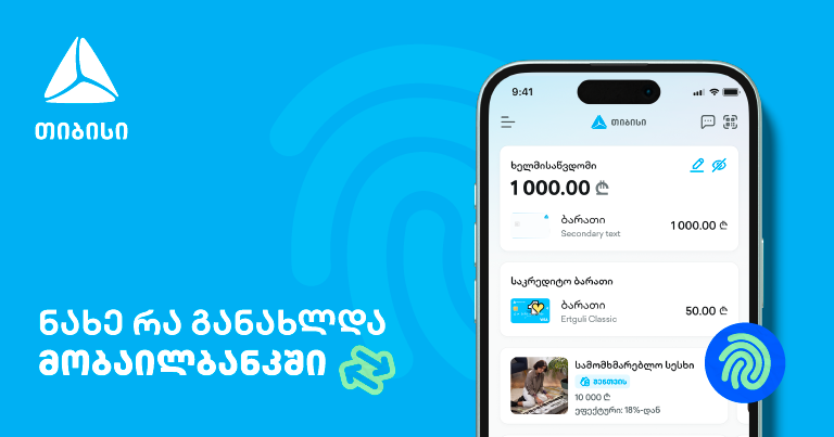ჩვენ ვუმარტივებთ ადამიანებს ცხოვრებას, ვამარტივებთ თქვენს ყოველდღიურობას მობაილბანკის ახალი ფუნქციონალებით, რომელსაც განსხვავებულ სიმაღლეზე აჰყავს ციფრული საბანკო ურთიერთობები.