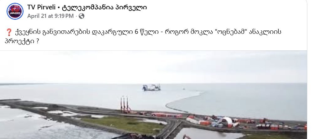 საქართველოს მესამე პრეზიდენტი, ამჟამად პატიმრობაში მყოფი მიხეილ სააკაშვილი, ანაკლიის პორტთან დაკავშირებით „ტვ პირველს“ სიცრუის ტირაჟირებაში ადანაშაულებს.