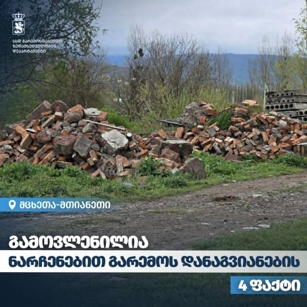 გარემოს დაცვისა და სოფლის მეურნეობის სამინისტროს გარემოსდაცვითი ზედამხედეველობის დეპარტამენტის მცხეთა-მთიანეთის რეგიონული სამმართველოს თანამშრომლებმა ნარჩენების მართვის კოდექსის დარღვევის 4 ფაქტი გამოავლინეს.