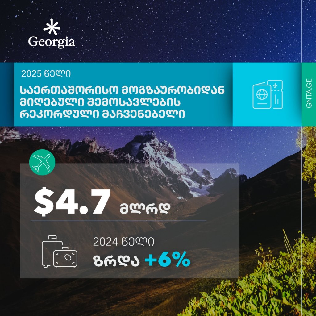 2025 წელს ტურიზმიდან მიღებული შემოსავლებმა რეკორდული ოდენობა - 4 690, 2 მლნ აშშ. დოლარი შეადგინა